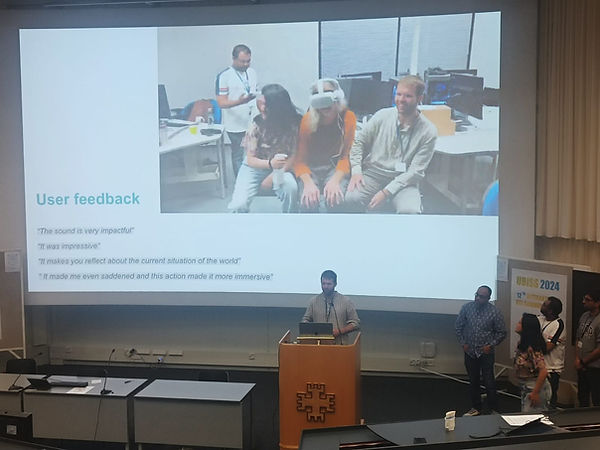 On the last day of the workshop, we presented our project to the entire summer school. After the presentation, our VR workshop did a showcase. We received good feedback, and people wanted to try our experience even after the showcase ended, which was a nice bonus for our team.